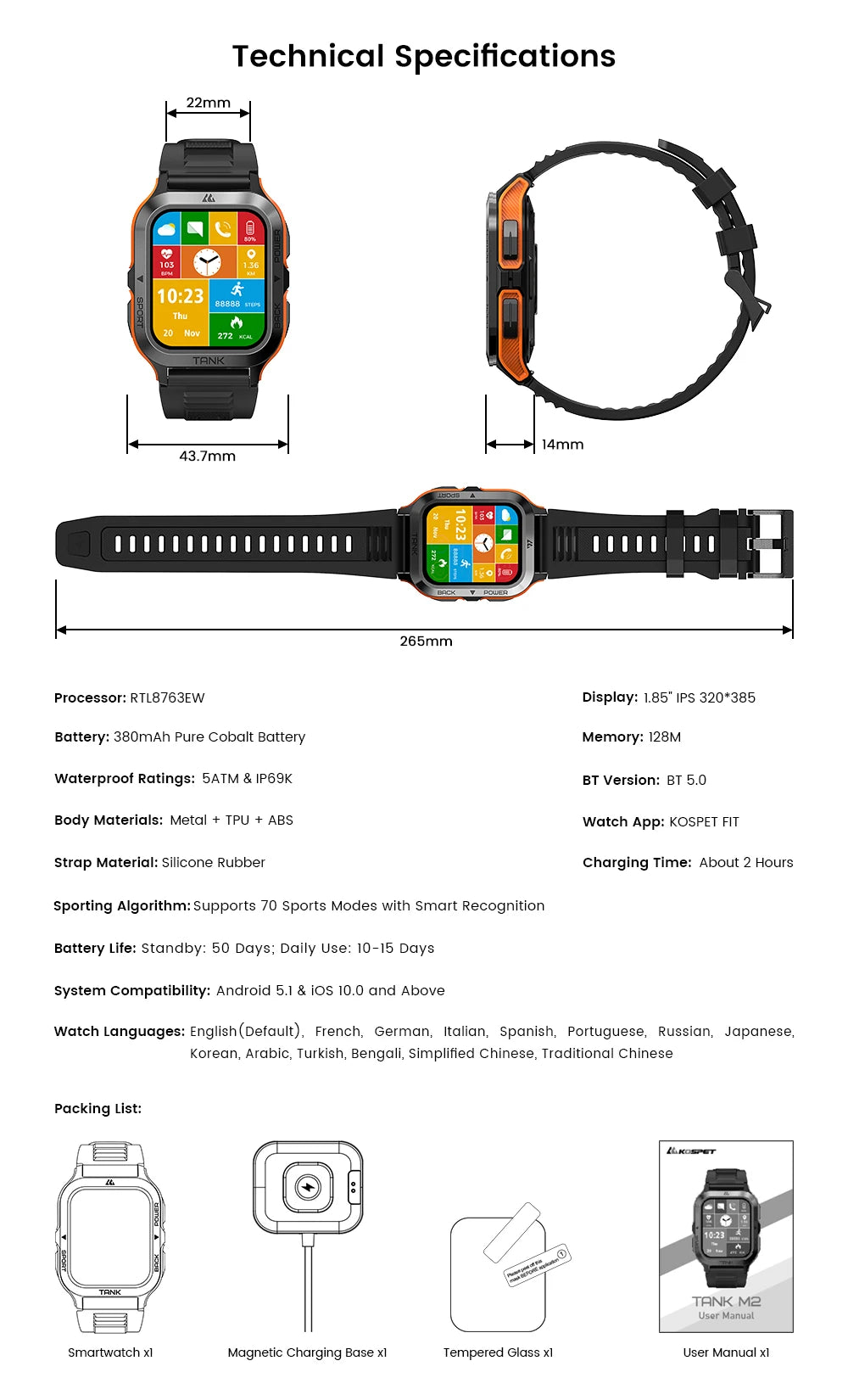 2023 NEW KOSPET TANK M2 Smart Watch